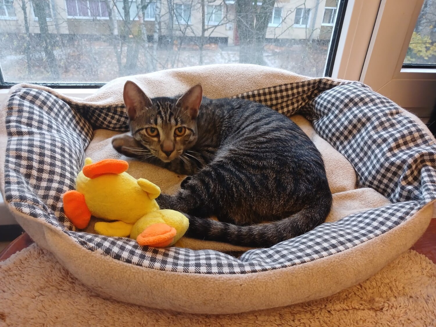 Он сразу пошел в лоток и привык к квартире, но он совсем не ручной. Может дать себя погладить, если ест вкусную еду. Может прийти поспать рядом и даже у вет врача ведет себя нормально, но так как в квартире есть и другие кошки, то ему с ними интереснее общаться и человека он обходит стороной.