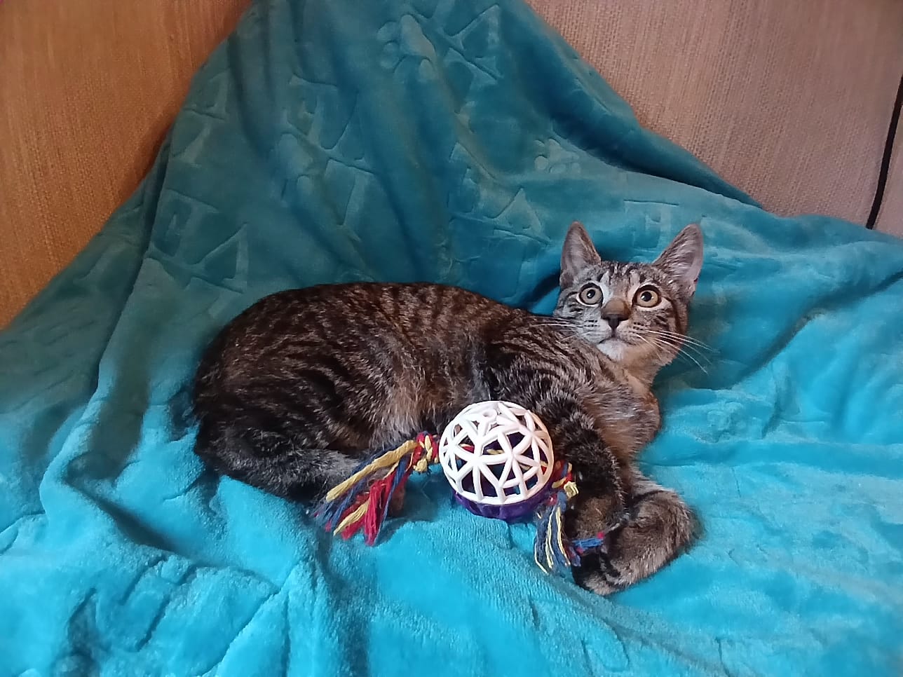 Увлекается разными игрушками, любит мячики, удочки, лесенки и вообще разные веселые активности.