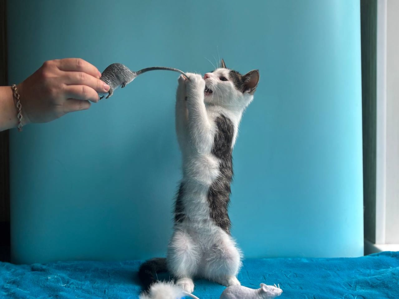 Предпочитает уютные лежаночки и чтобы игрушки-мышки лежали рядом.