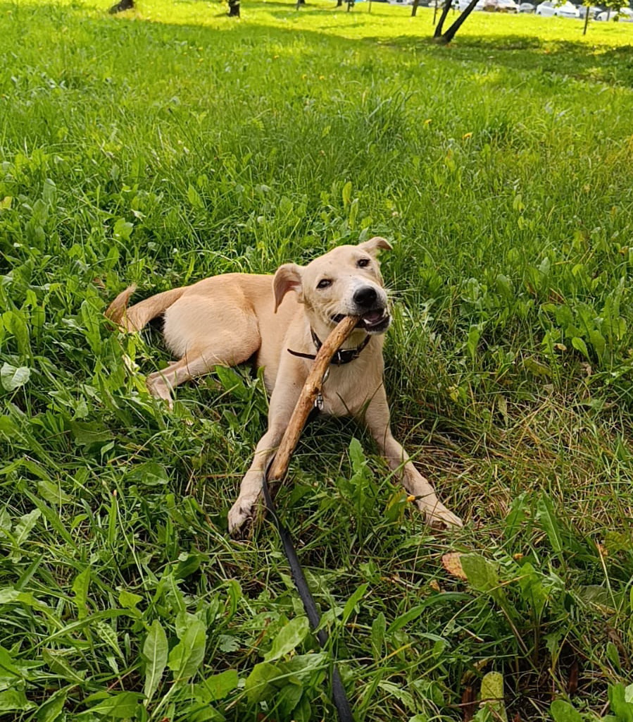 Надюша ласковая и послушная девчонка с очень нежной душой, спокойная и дружелюбная, хотя имеет и свое мнение и может его высказать. На прогулке больше старается быть рядом с человеком, идёт спокойно.
