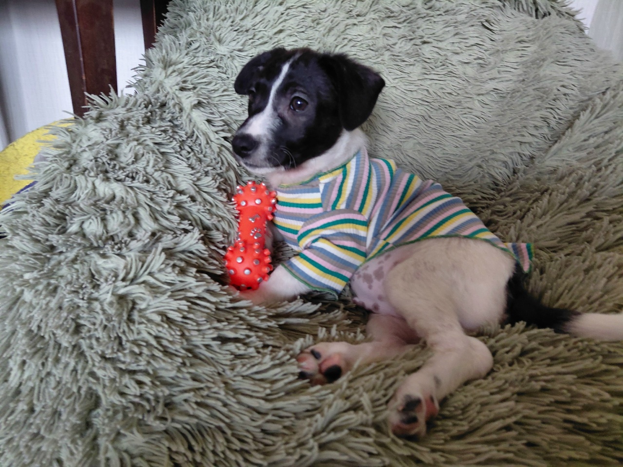Несмотря на свой юный возраст, Артур очень умный и смышленый щенок. Конечно, он любит играть, возится с игрушками и очень мило спит клубком в лежаночке.