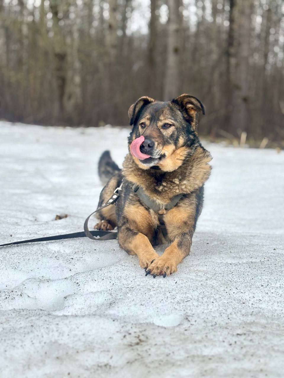 Она неторопливая, послушная, но тоже любит и в снегу поваляться и чуток поиграть.