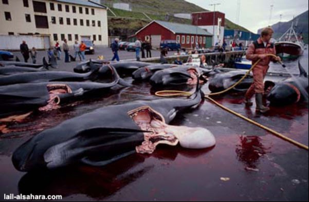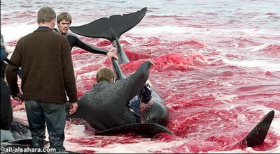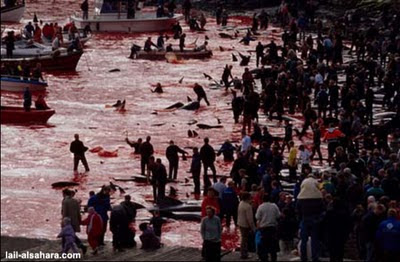 на Фарерских островах в Дании. Главные участникик этого жестокого
